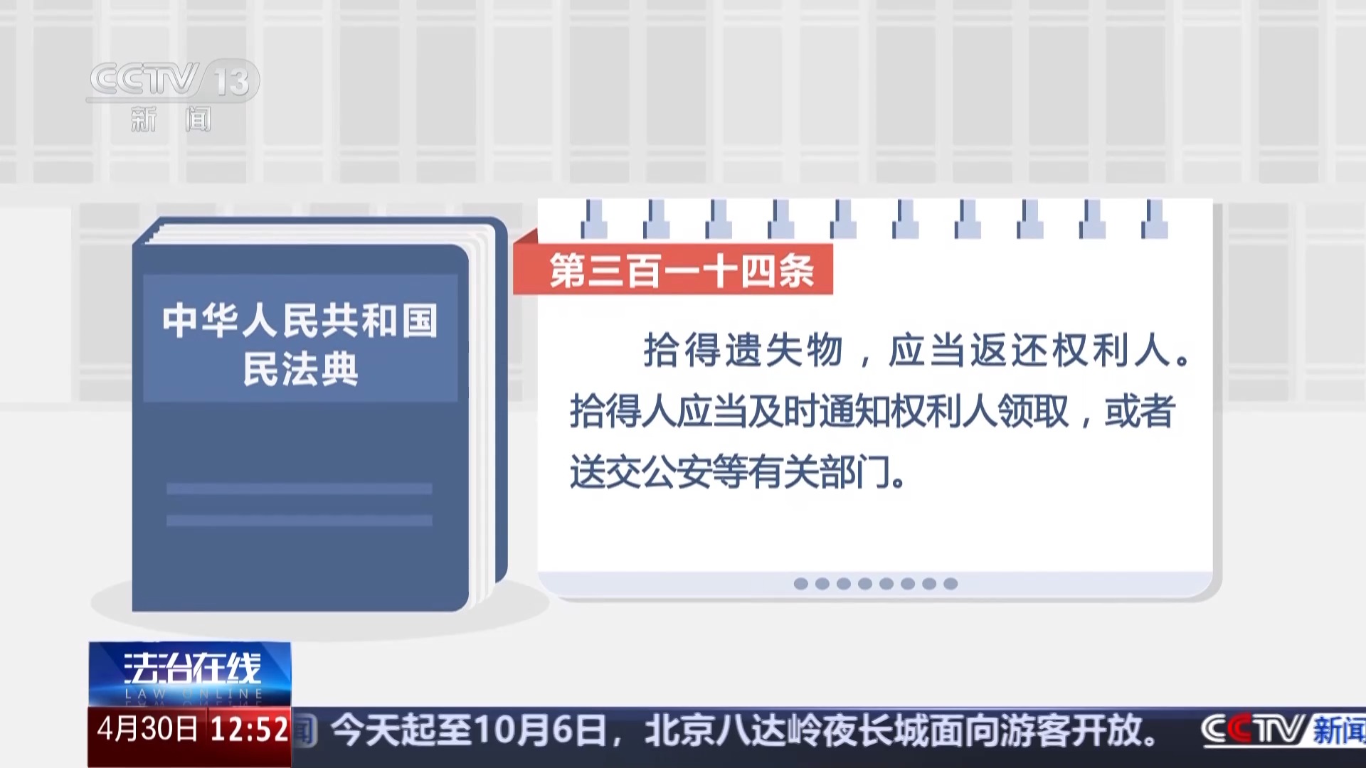 郑州市金水区人民法院民一庭法官常海凤:拾金不昧4个字,法律规制的是这个“昧”字炒股配资交流网,重点是后边,也就是民法典第三百一十四条、第三百一十六条的规定。不管什么情况,只要捡到这个东西都有保管的义务。如果因为自己没有妥善保管,故意或重大过失导致遗失物灭失毁损了,按照法律规定是要承担法律责任的,这也是法律刚性约束和道德柔性同频共振的体现。
